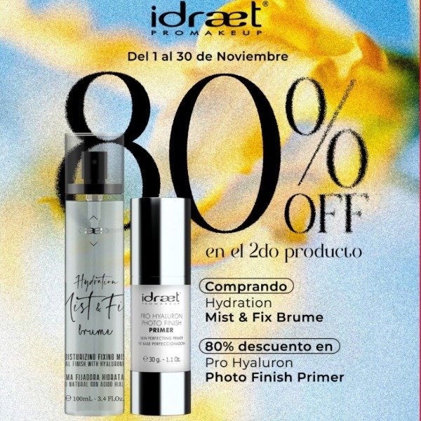 Comprá el Hydration Mist & Fix Brume y llevate el Pro Hyaluron Photo Finish Primer con 80% OFF.