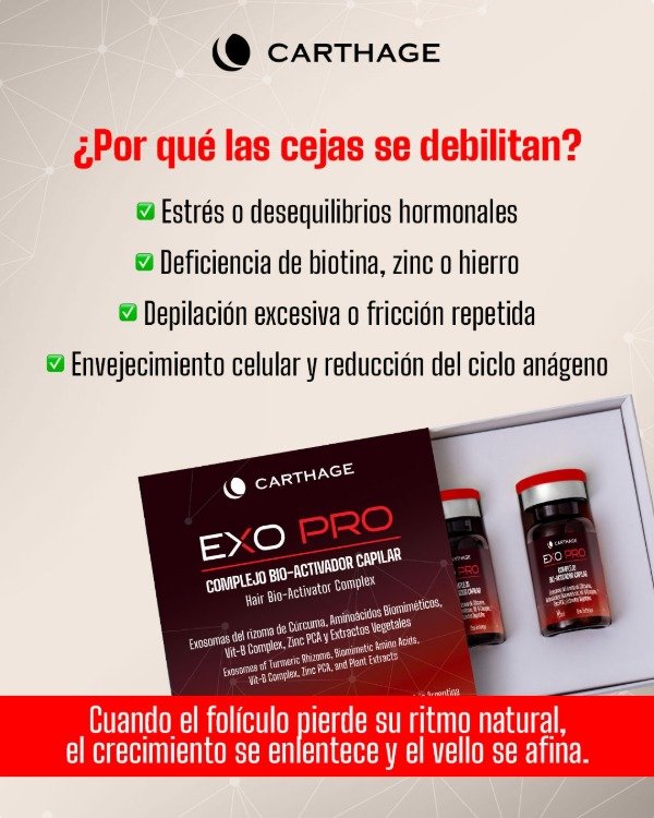 Combina exosomas vegetales del rizoma de Cúrcuma Longa, capaces de estimular la expresión de IGF 1 y miR 31, claves en la activación de la fase anágena. Esta señalización favorece la regeneración folicular, fortalece la estructura del cabello y ayuda a reducir su caída. La fórmula se enriquece con un Complejo Bioactivo de alta eficacia con aminoácidos biomiméticos (estructuralmente similares a los de la queratina capilar), Vitaminas del grupo B (Pantenol, Niacinamida, Biotina), Zinc PCA y extractos vegetales como Ginseng y Allium Cepa, que actúan en sinergia.